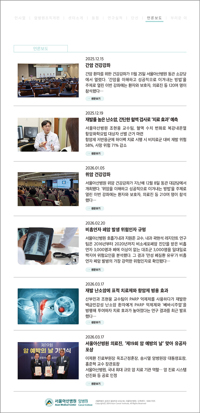 암병원소식지 44호 : 1분기 암병원 언론보도